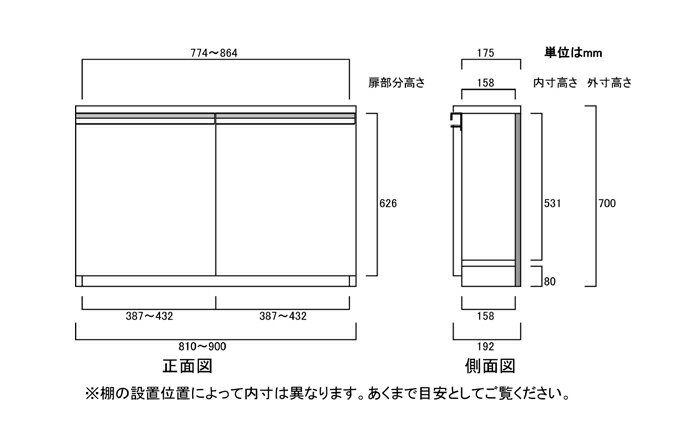 商品仕様 ■タイプ: 扉付 タフ棚板(棚板厚さ2.5cm)タイプ 両開き ■棚板耐荷重: 7Kg ■外寸: 奥行19cm×高さ70cm×幅81〜90cm (幅は1cm単位でオーダーできます) ■外寸(幅): 81cm 82cm 83cm 84cm 84cm 85cm 86cm 87cm 89cm 90cm ■棚板枚数 移動固定棚板:2 共通仕様 ■材質: プリント化粧繊維板 ■塗装: ウレタン樹脂塗装 ■素材: ホルムアルデヒドの発生を最小限に抑えた基材・芯材・プリント紙・接着剤(F☆