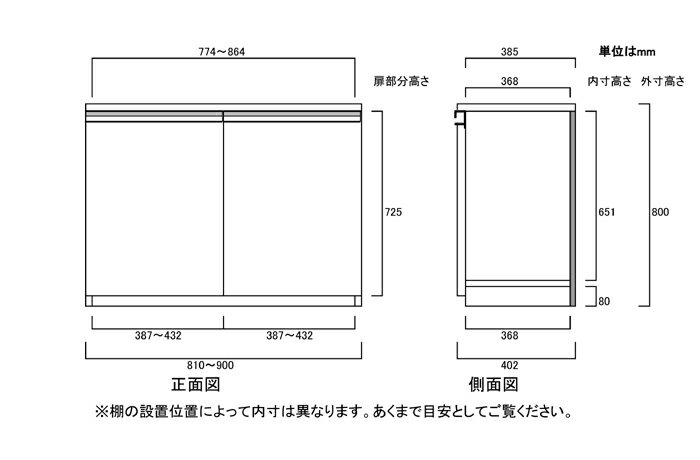 商品仕様 ■タイプ: 扉付 タフ棚板(棚板厚さ2.5cm)タイプ 両開き ■棚板耐荷重: 10Kg ■外寸: 奥行40cm×高さ80cm×幅81〜90cm (幅は1cm単位でオーダーできます) ■外寸(幅): 81cm 82cm 83cm 84cm 84cm 85cm 86cm 87cm 89cm 90cm ■棚板枚数 移動固定棚板:2 共通仕様 ■材質: プリント化粧繊維板 ■塗装: ウレタン樹脂塗装 ■素材: ホルムアルデヒドの発生を最小限に抑えた基材・芯材・プリント紙・接着剤(F☆