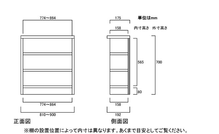 商品仕様 ■タイプ: タフ棚板(棚板厚さ2.5cm)タイプ ■棚板耐荷重: 7Kg ■外寸: 奥行19cm×高さ70cm×幅81〜90cm (幅は1cm単位でオーダーできます) ■外寸(幅): 81cm 82cm 83cm 84cm 84cm 85cm 86cm 87cm 89cm 90cm ■棚板枚数 移動固定棚板:2 共通仕様 ■材質: プリント化粧繊維板 ■塗装: ウレタン樹脂塗装 ■素材: ホルムアルデヒドの発生を最小限に抑えた基材・芯材・プリント紙・接着剤(F☆