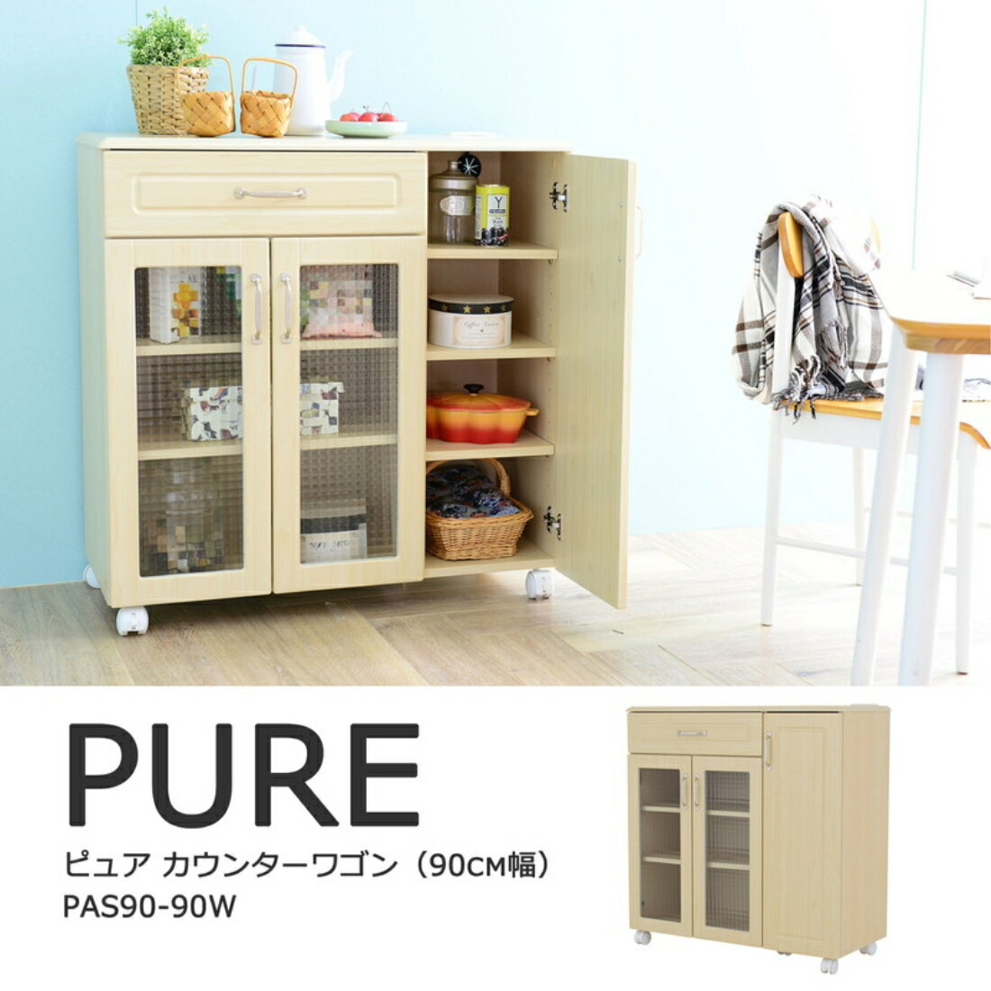 木目調のカラーにレトロなクロスガラスの組み合わせが可愛いホワイトナチュラルシリーズ。