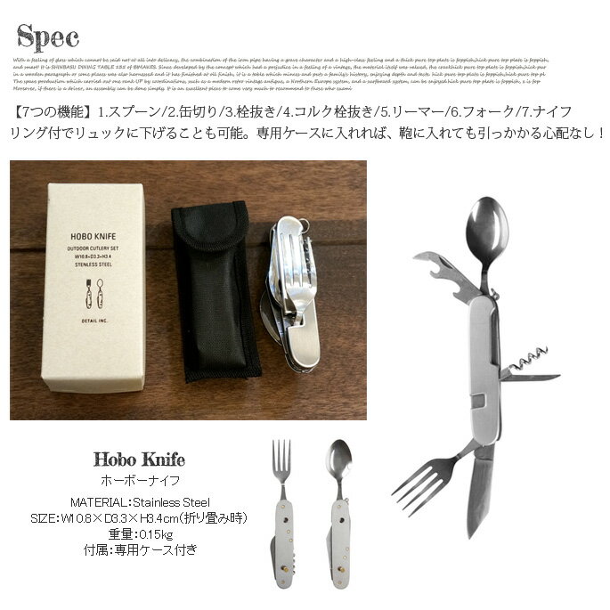 Hobo Knife アウトドアカトラリー 7つの機能がついた、オールインワンのアウトドアカトラリーHobo Knife(ホーボーナイフ)。
